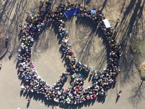 Schüler mit Friedenstaube