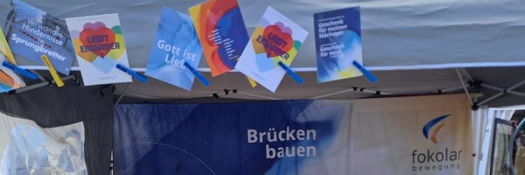 375 Jahre Westfälischer Friede feiert die Stadt Osnabrück und die Kirchen luden ein zu einem Ökumenischen Kirchentag im Juni 2023. Auch die Fokolar-Bewegung war mit einem Stand dabei.