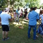 Im Schatten der Bäume bei herrlichem Sonnenschein mit hochsommerlichen Temperaturen gab es viele Möglichkeiten sich an Team- und Kooperationsspielen wie Vikinger-Schach und Tower-of-Power zu beteiligen oder einfach zuzuschauen. Vertreter/innen der Stadtverwaltung sowie dem Ortsbeirat standen den Gästen am Rande Rede und Antwort und informierten über aktuelle Entwicklungen und Integrationsbemühungen im Stadtgebiet.